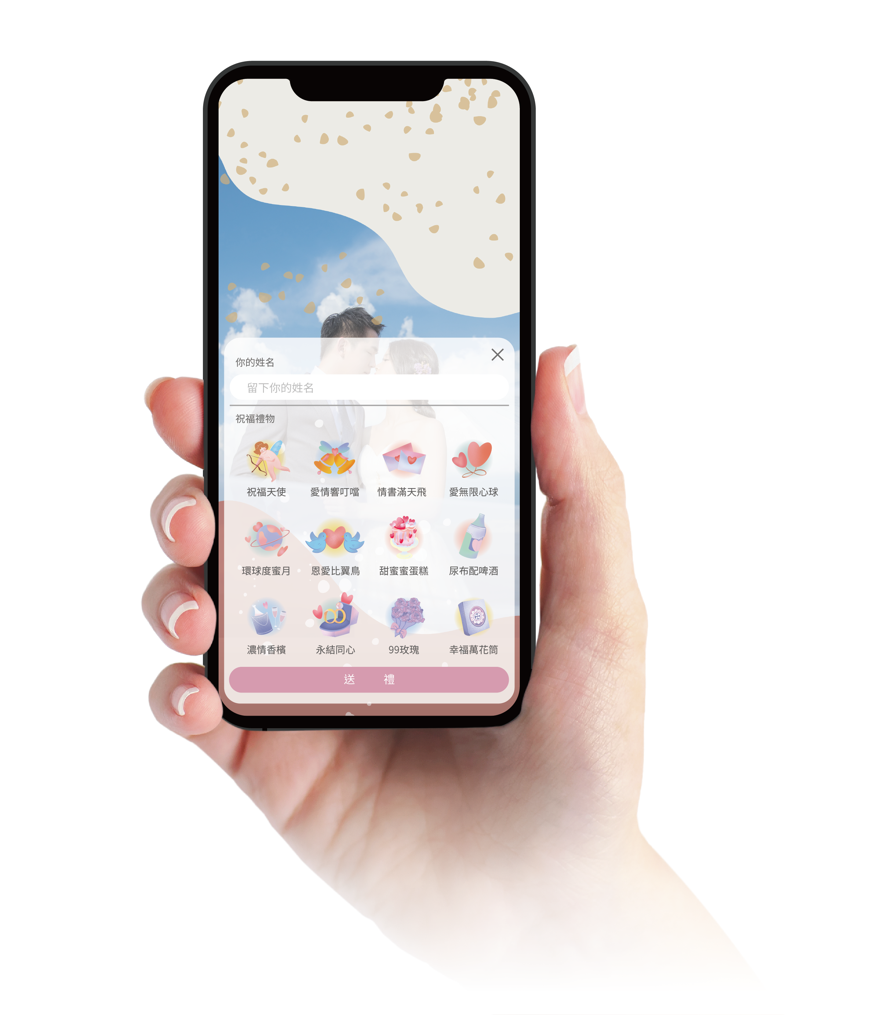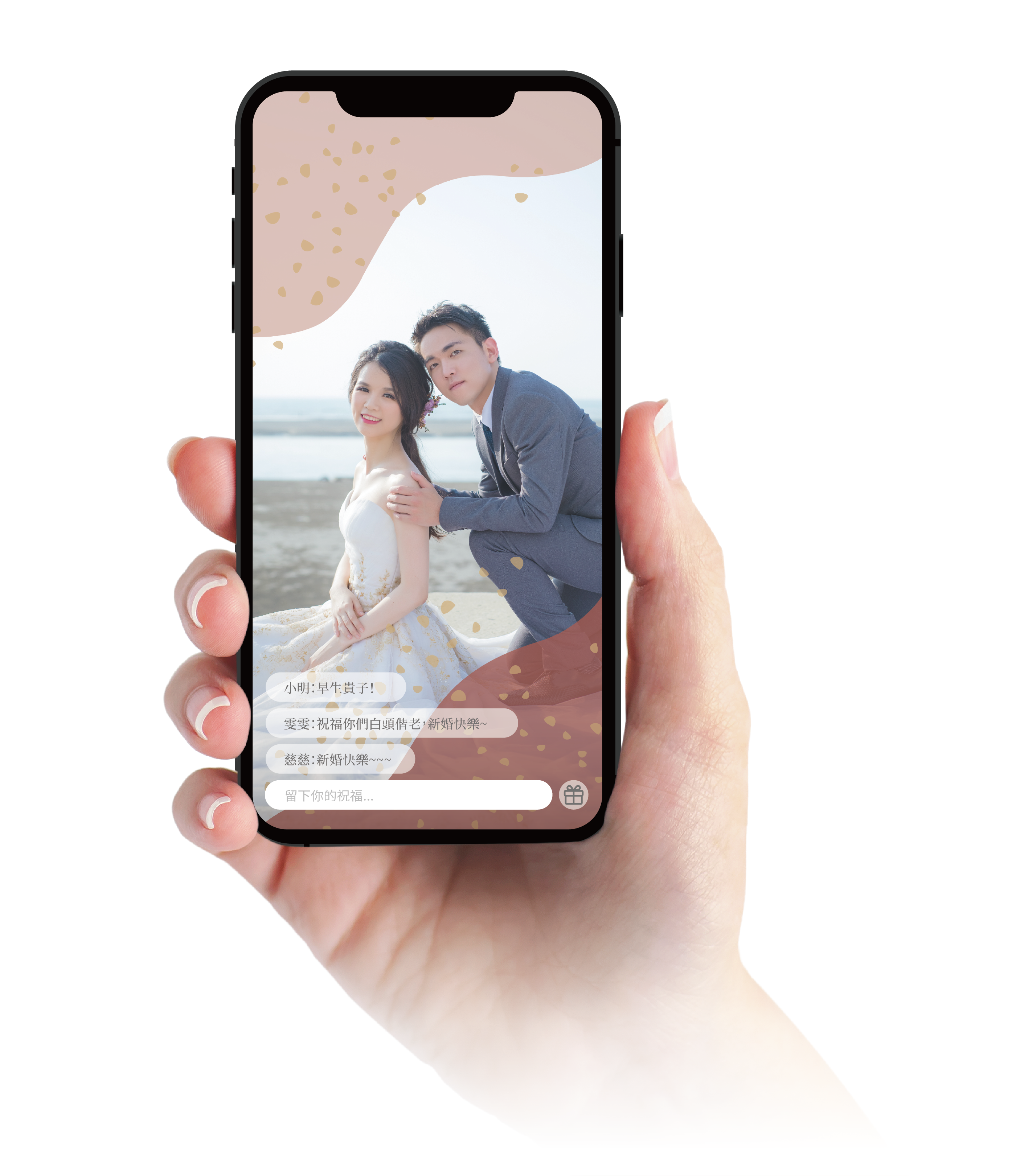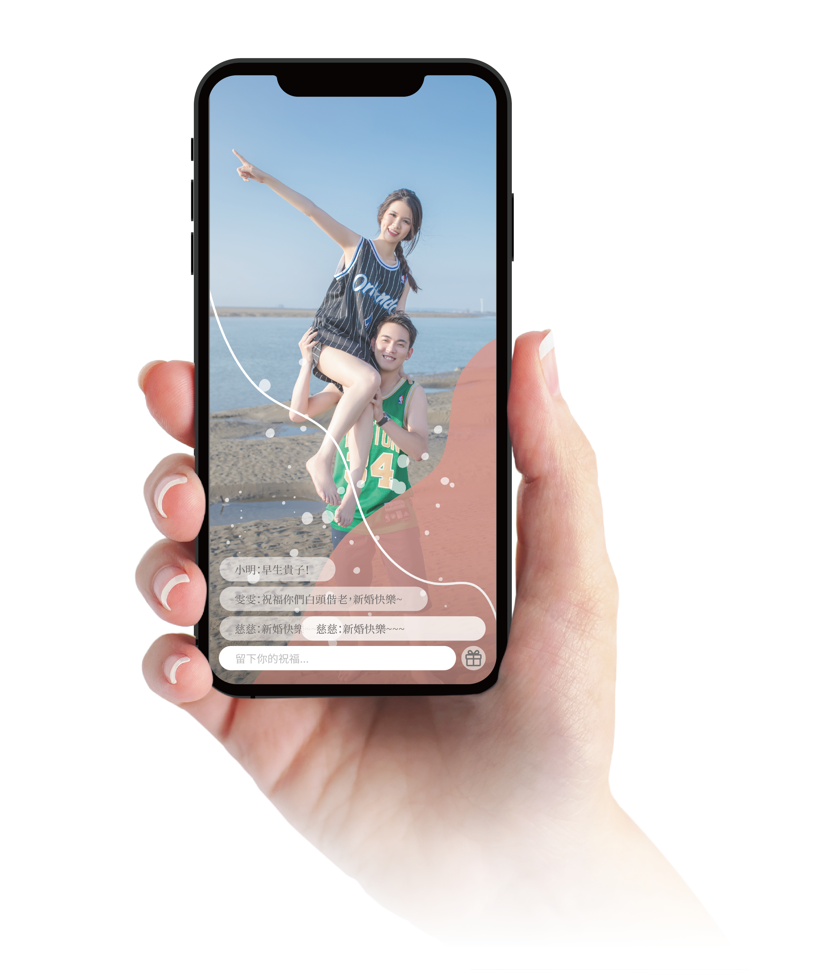互動式電子喜帖,讓喜帖不再只是一張傳遞喜訊的卡片,而是可以雙向互動的婚禮社群!親友將在喜帖上留言、送禮,給予新人溫暖且即時的祝福喲!