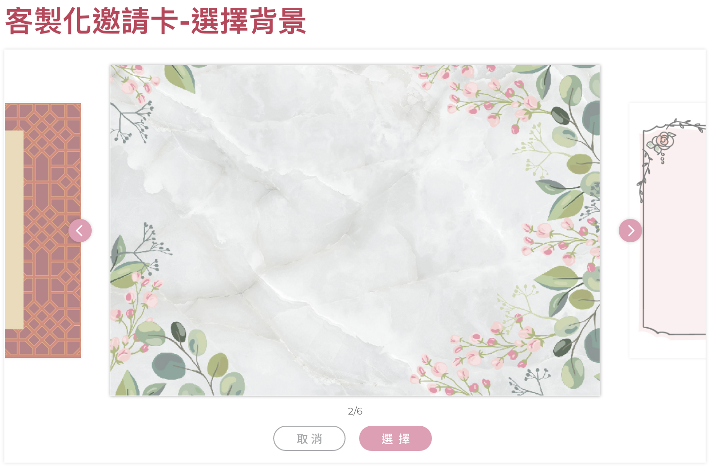 (2)其它素材客製化,例如音樂。如果您想要獨一無二的喜帖設計,也同時希望保留互動電子喜帖的功能,推薦您了解方案(1),該設計將會由新人與設計師共同討論;如果您希望使用私人音檔,請了解方案(2),本平台支援 .mp3, .mp4, .wav 的檔案格式。若有其他客製化需求,請洽官方客服了解進一步資訊。