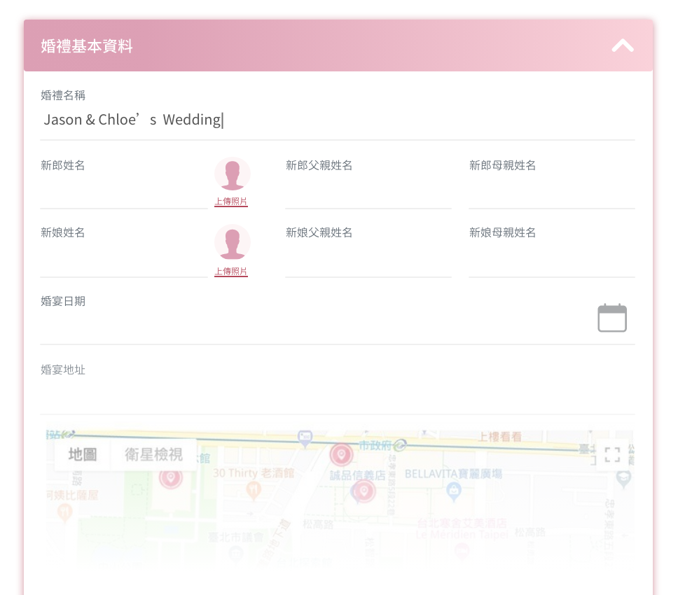 新人將會擁有專屬的婚宴管理後台,透過後台的管理小工具,掌握赴宴名單、還有機會使用一系列進階功能!
